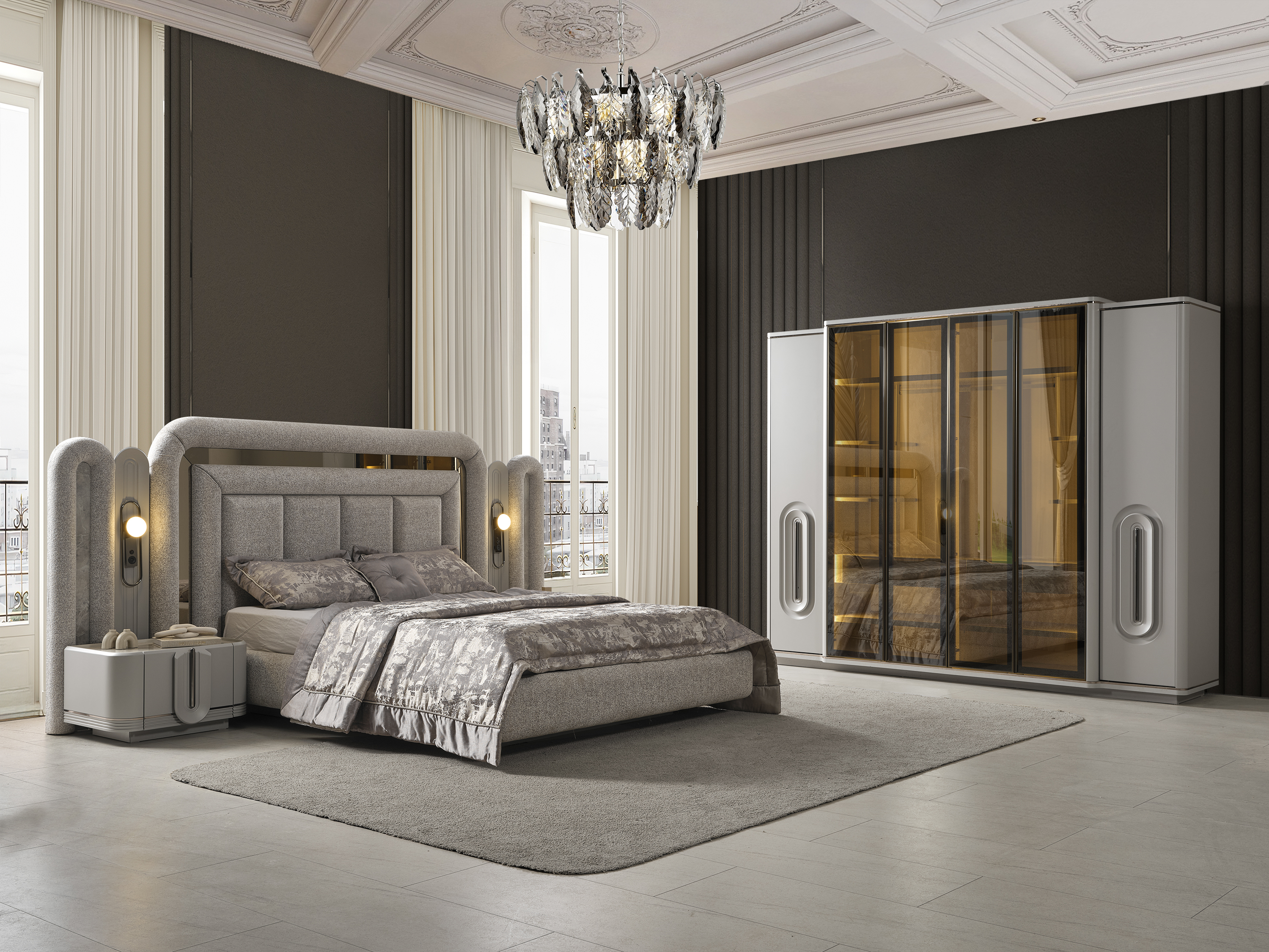 PRADA SİS GRİ YATAK ODASI TAKIMI